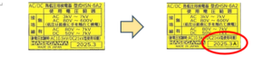 注記: 改修完了した製品には、識別の為製造ロット番号末尾に「A」を付与。
